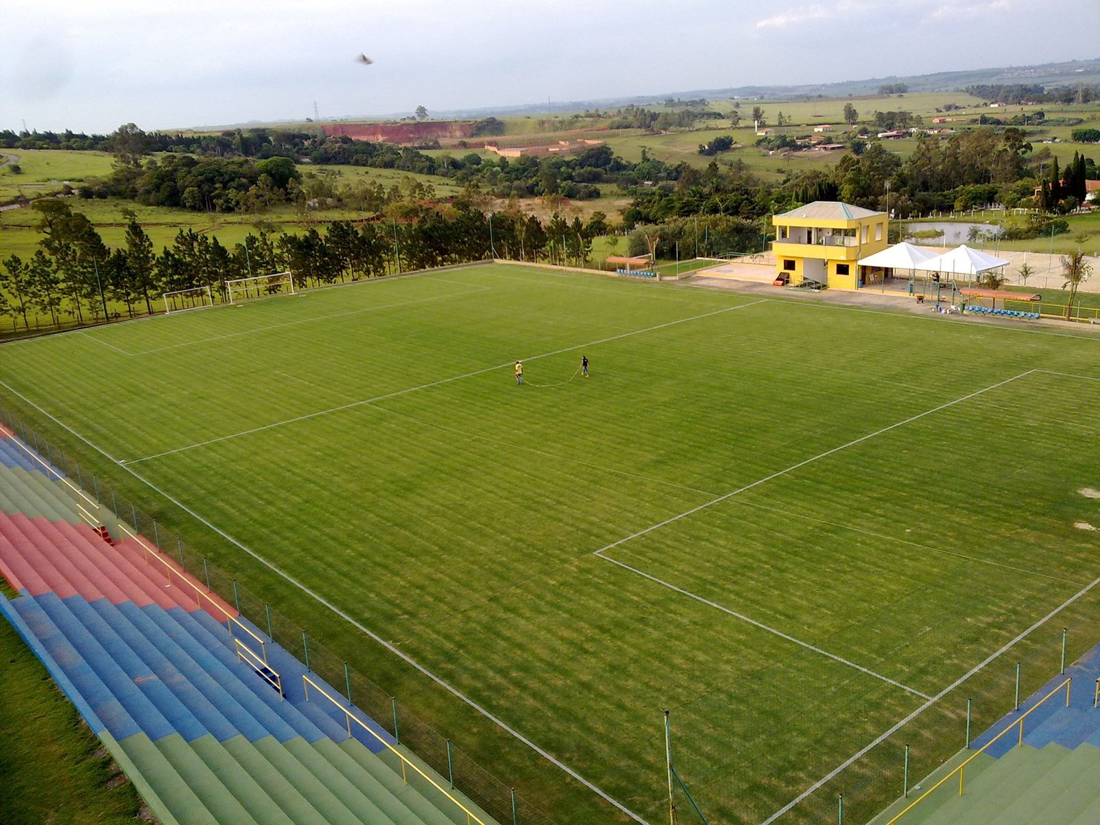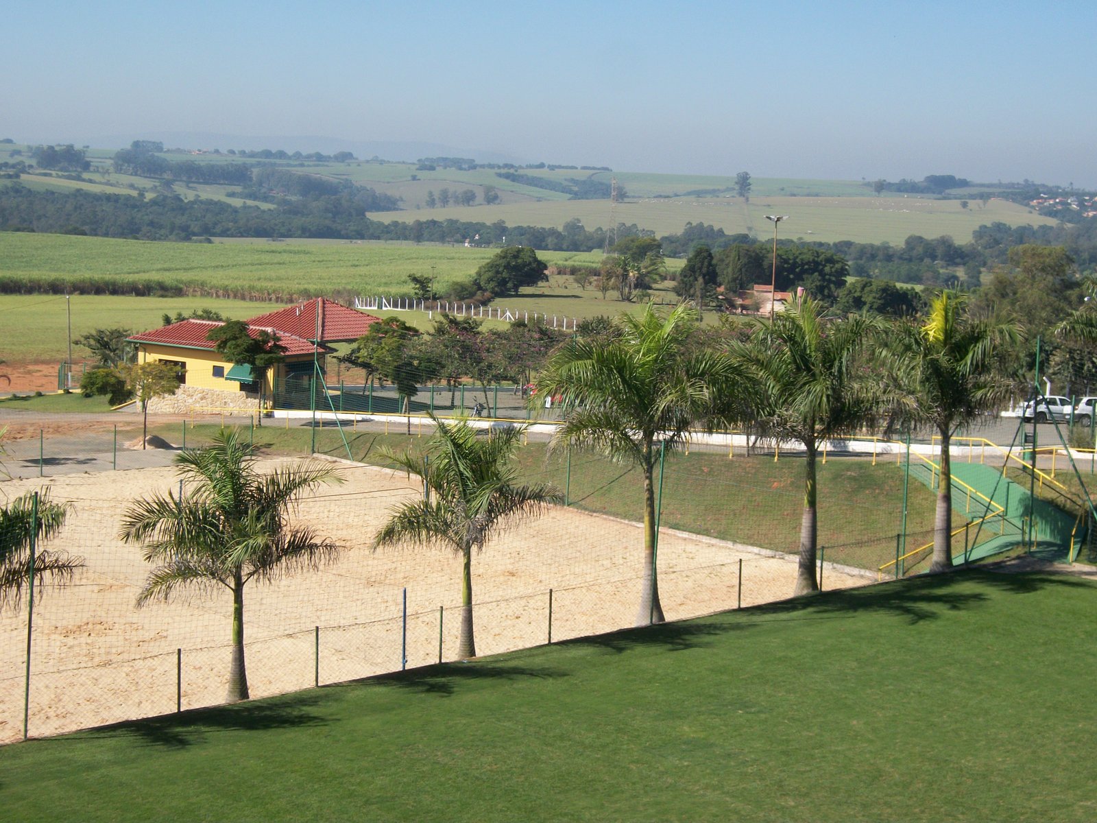 Diversas quadras e campos para prática de esportes.